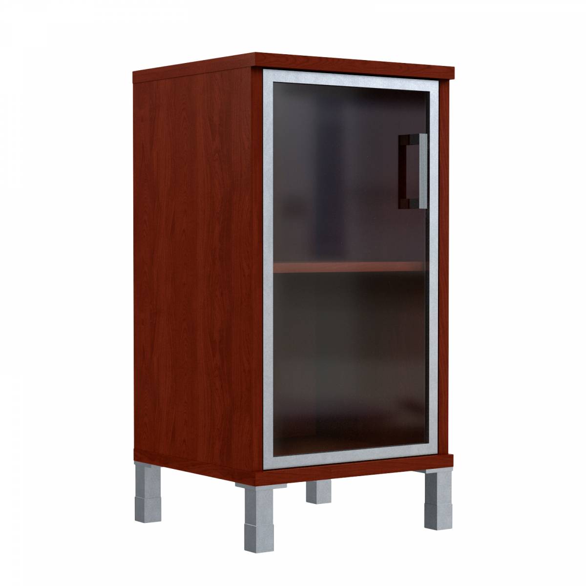 Шкаф-колонка низкая со стеклянной дверью в AL-рамке B 411.4(L) Бургунди 475х450х920