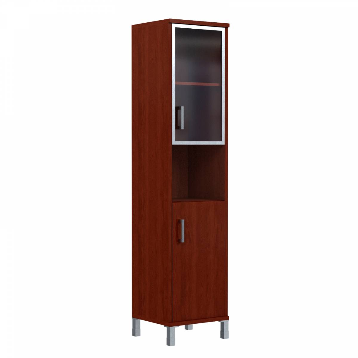 Шкаф-колонка высокая с малой стеклянной дверью в AL-рамке и глухой B 431.9(L) Бургунди 475х450х2054