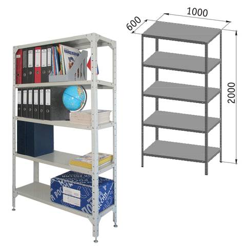 • Стеллаж металлический "УНИВЕРСАЛ", 2000х1000х600 мм, УСИЛЕННЫЕ СТОЙКИ, 5 полок, регулируемые опоры, 290243